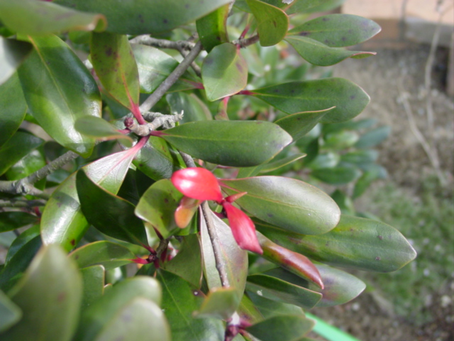 モッコクの新芽が真紅に輝く。