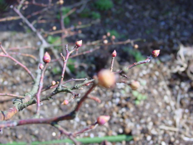 ブルベリーの穂先が膨らみ始めた。