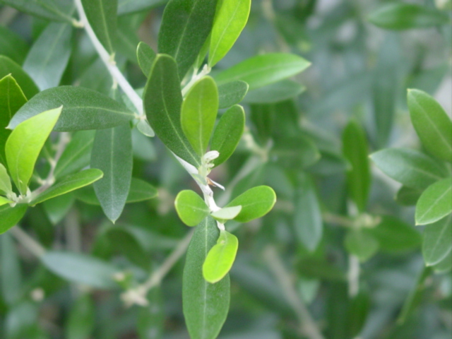 オリーブが元気に朝日を浴びている。