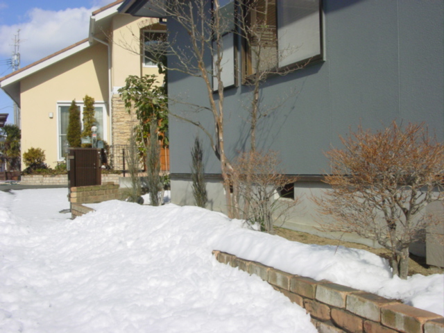 積雪の中、