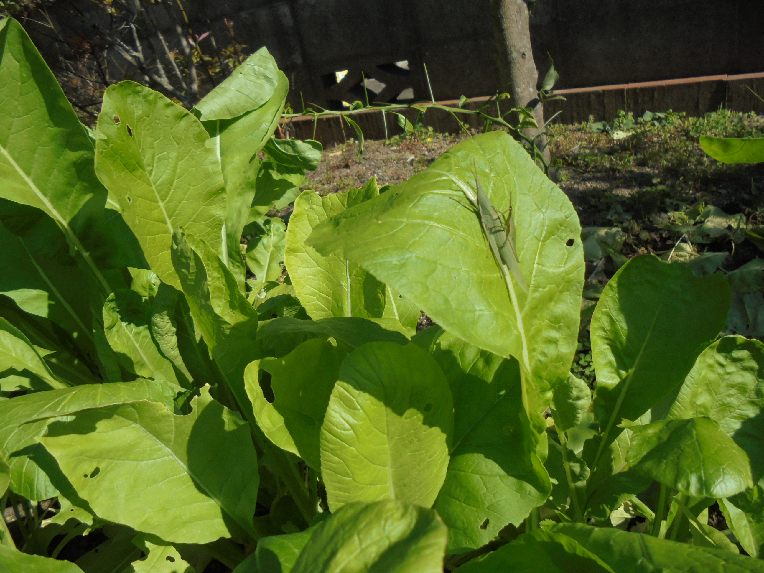 小松菜の収穫中、